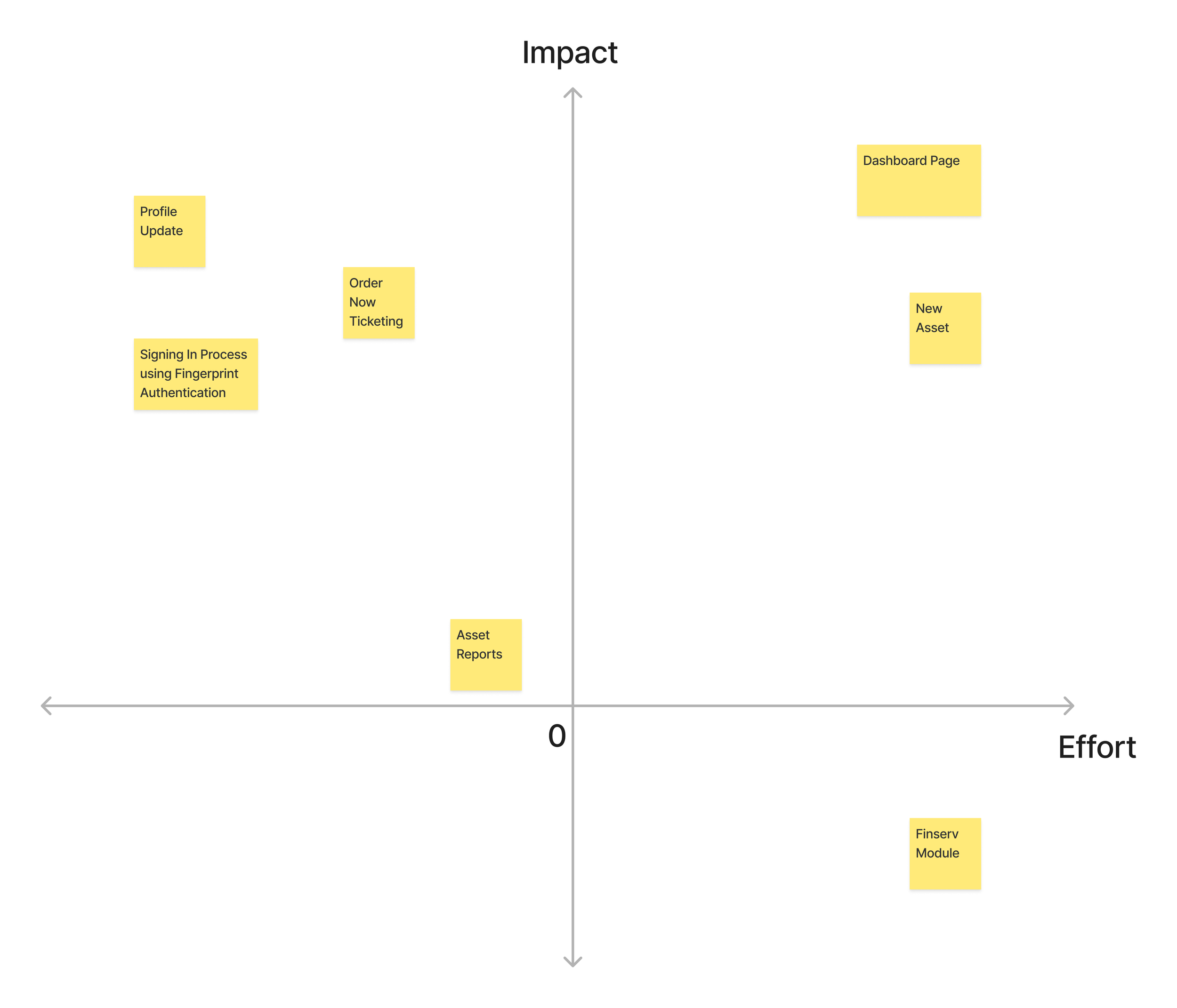 For the mobile application, I used a priority matrix with the x-axis denoting Effort and the y-axis denoting Impact.