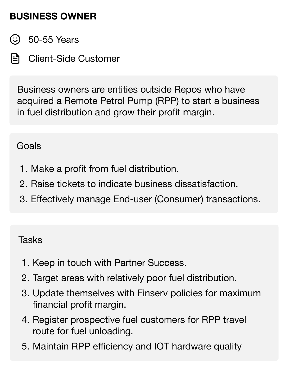 In December 2020, I worked for a fuel-distribution scale-up. The scale-up focused on delivering fuel in macro quantities to remote places where location and geography made it difficult for conventional gas stations to work. The scale-up also provided for prospective business owners to buy their own Remote Petrol Pumps - RPPs - container trucks which were equipped with their own security and IOT hardware to provide for fuel distribution and security.
